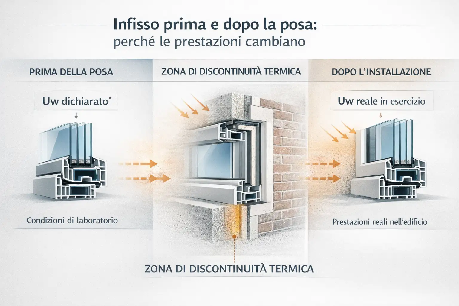 In altre parole, il valore Uw non è falso, ma è incompleto se isolato dal contesto. Valutare un infisso solo sulla base di quel numero significa ignorare il comportamento del sistema una volta installato, che è ciò che determina il comfort reale dell’abitazione e i consumi energetici nel tempo.