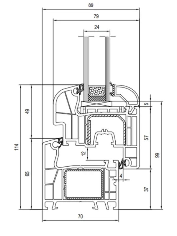 Il sistema Aluplast Ideal 4000 Round Line è uno dei profili più utilizzati in Europa per la produzione di finestre in PVC di ultima generazione, grazie al suo equilibrio tra prestazioni tecniche, affidabilità e possibilità estetiche. La struttura multicamera a 5 camere del telaio e dell’anta rappresenta il cuore del sistema: questo tipo di geometria permette di migliorare la resistenza al trasferimento di calore e di ottenere un livello di isolamento acustico superiore rispetto ai vecchi serramenti in alluminio non isolato o ai sistemi in legno con vetro singolo.